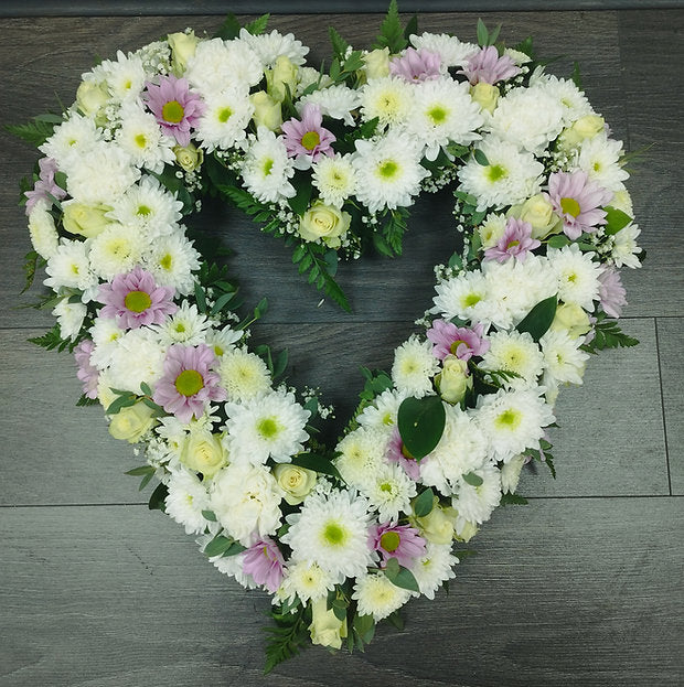 Sympathy Heart - funeral arrangement on a heart shape base. Comfort those in mourning and express your own grief by sending our beautiful funeral heart to the funeral or memorial. Diameter 43 cm.